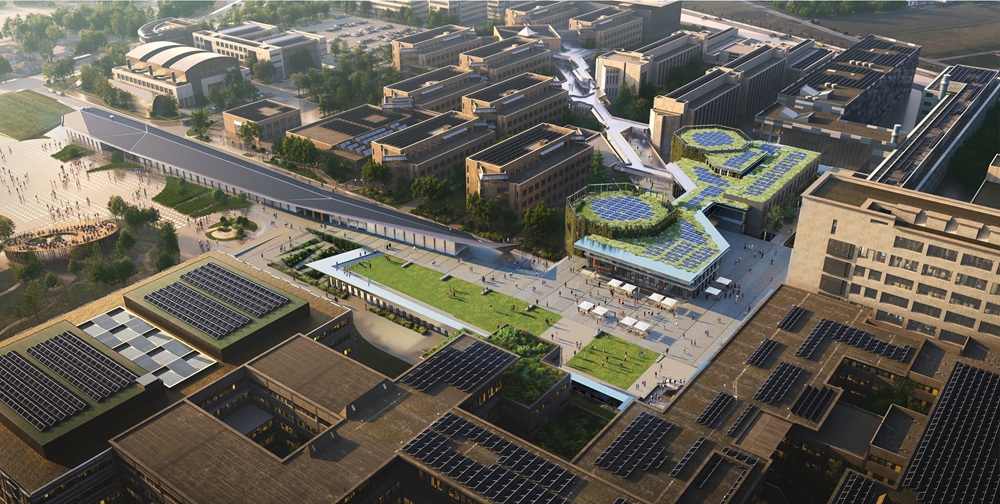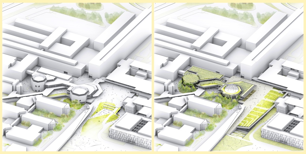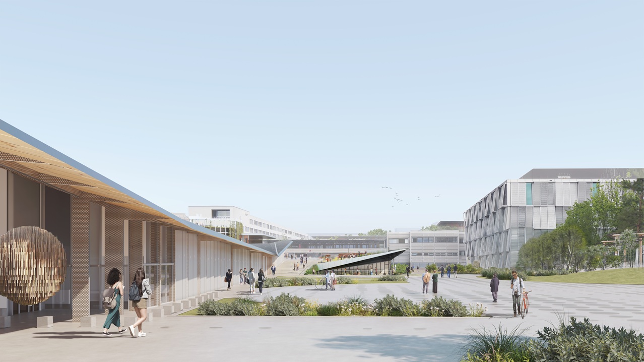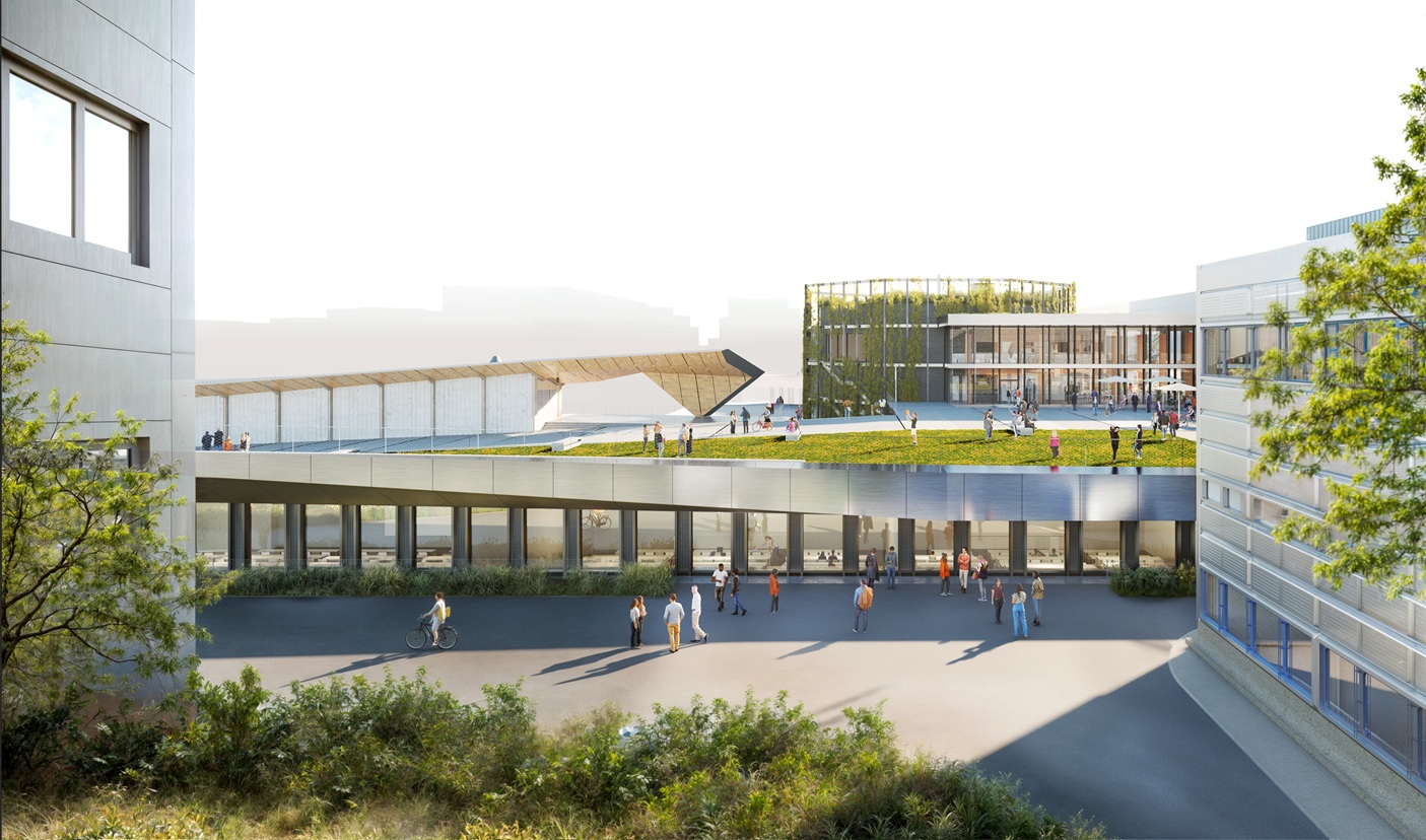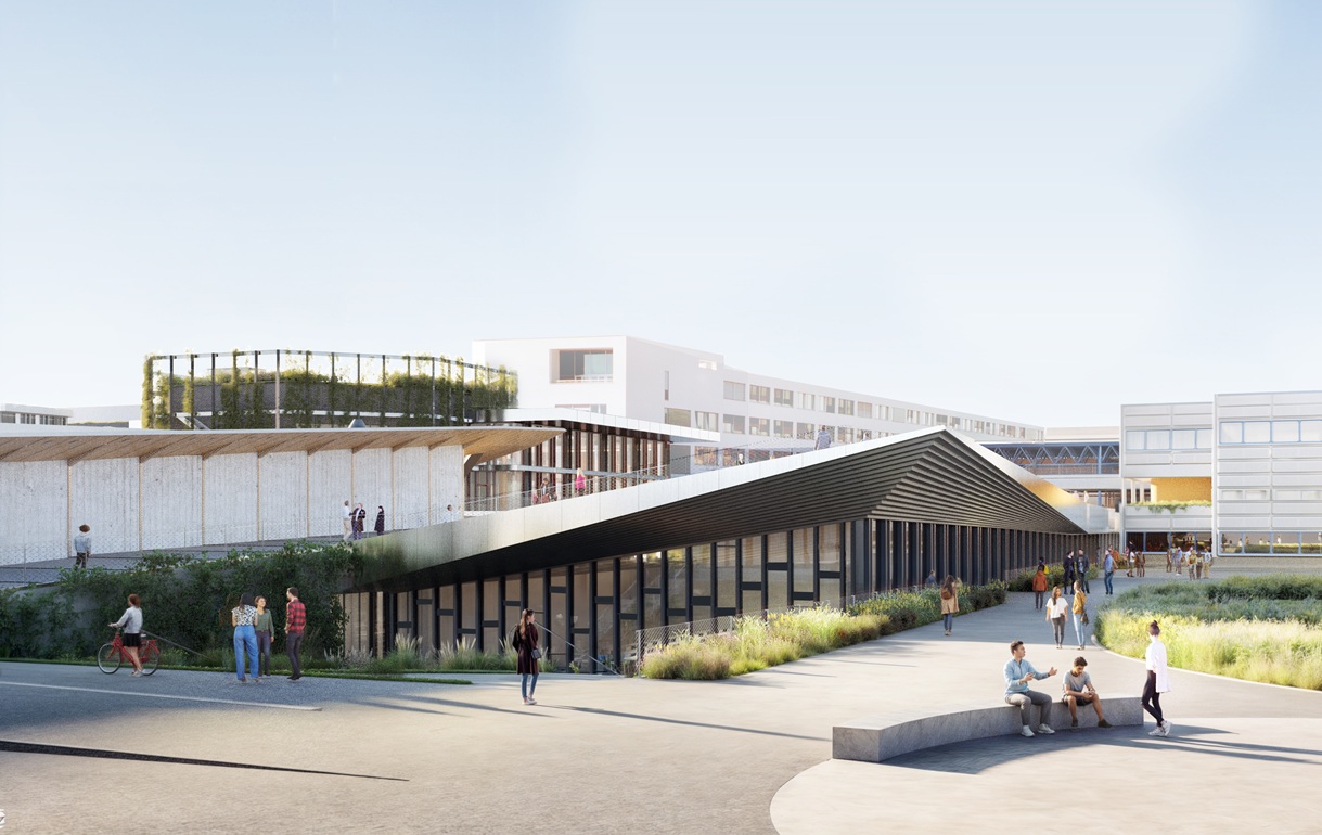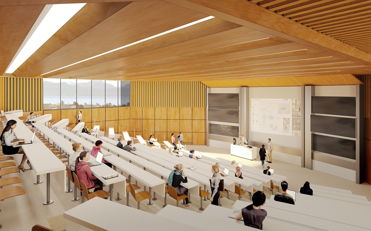 A distinctive feature of the square, the new building will house modular classrooms seating 200-500 students located on the site of the underground car park and will be set slightly higher than the old square. The building's fully-landscaped roof will extend southwards towards the Alps and set the campus's identity: a large garden-square-belvedere, a new public space offering new views of the surrounding landscape.