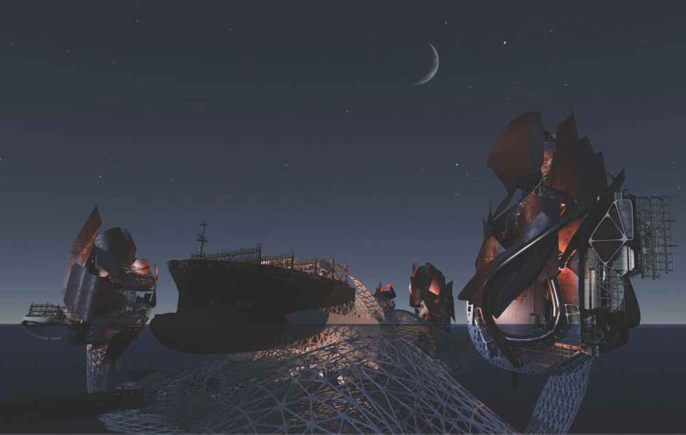 vessels to life as floating archipelagos where human settlements coexist with
