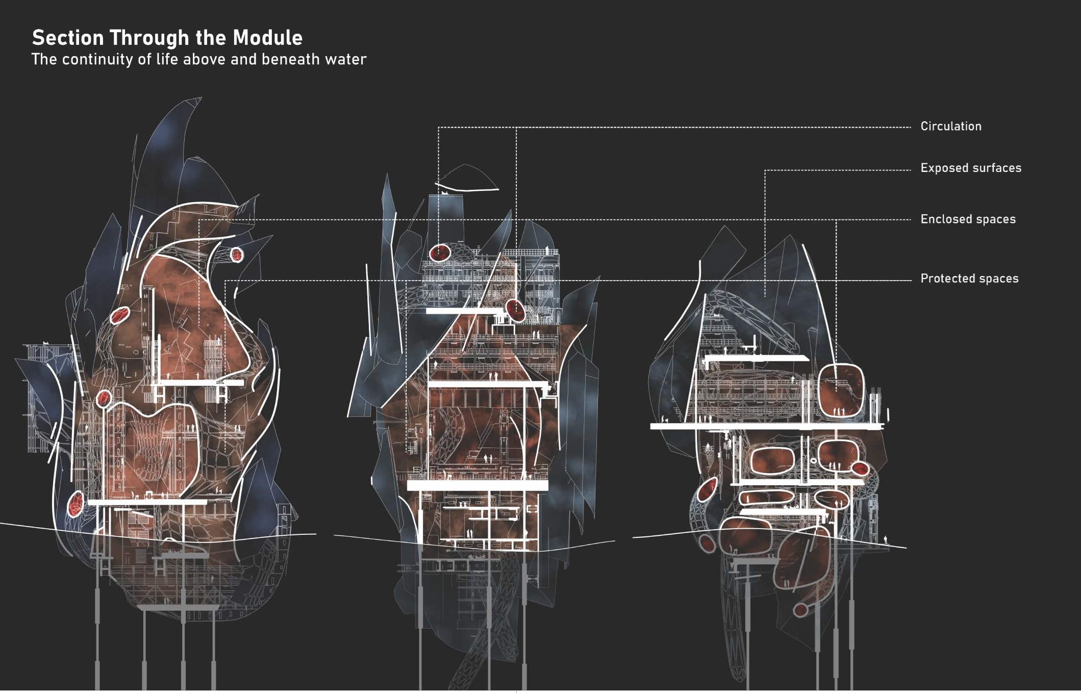 TideFusion features a permeable and regenerative architectural design capable of reconnecting coastal communities to mangroves, transforming arid borderland into a living space that filters water, generates energy, and supports the ecosystem.