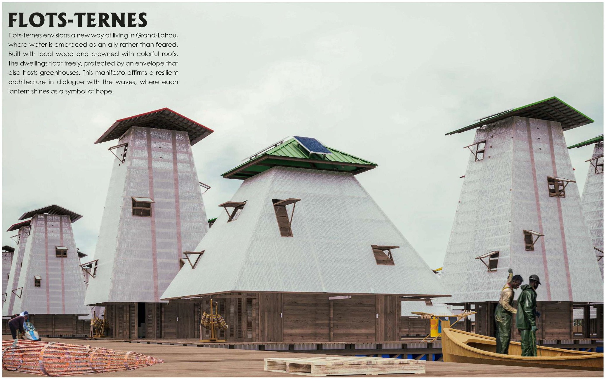 that houses nutrient-rich greenhouses. Flots-Ternes embodies a poetic form of resilience,
