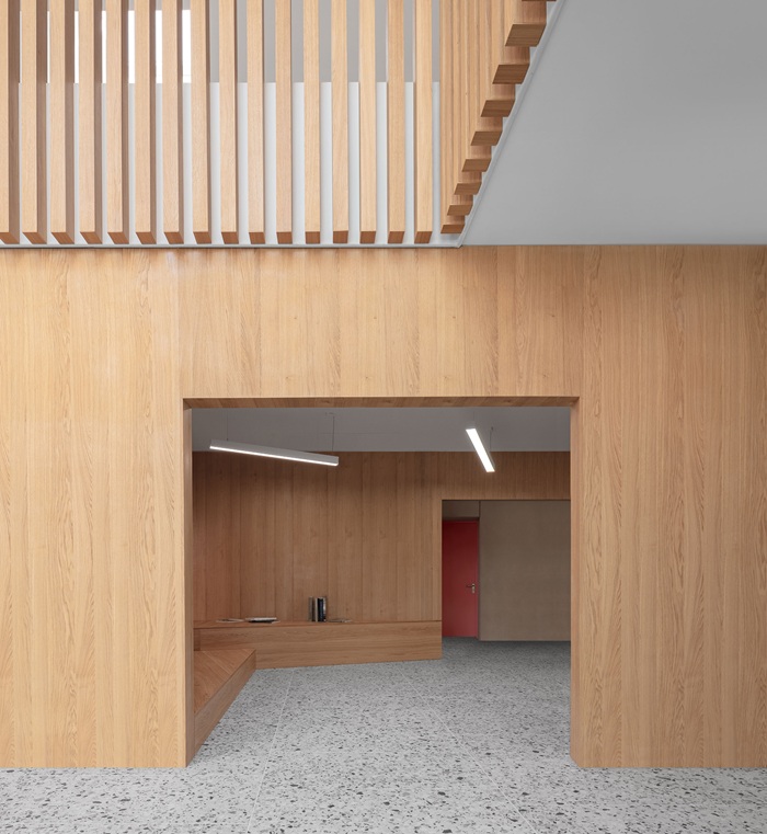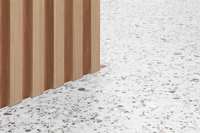 Pour les revêtements des sols et de certains murs, une surface d’environ 1 700 m², les architectes ont choisi de dalles format 60X120 cm en grès cérame d’inspiration terrazzo de la collection Le Ville de Casalgrande Padana.