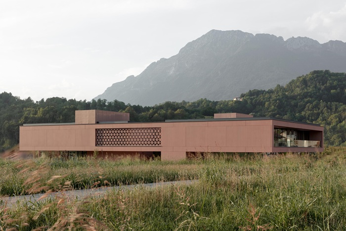 Le projet recherche une harmonie entre forme, structure et matériau grâce à une coque en béton apparent, fabriquée à l'aide de technologies de pointe. Ne nécessitant aucune finition supplémentaire, elle intègre l'isolation et tous les équipements techniques nécessaires.