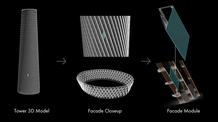 Client: Hyundai Engineering & Construction Co. Ltd., Doha (QA) Alutec Qatar, Doha (QA); Project: Foster + Partners, London (UK); Parametric shading fin structural design: Werner Sobek