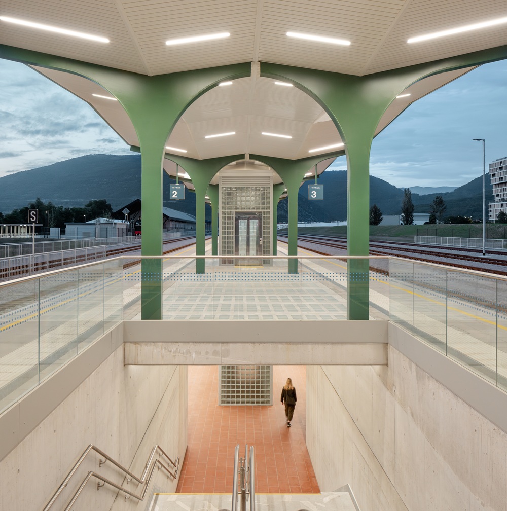 SADAR+VUGA, an architecture firm set up by Jurij Sadar and Boštjan Vuga based in Ljubljana, has completed a landmark renovation of the Nova Gorica railway station underpass, a highly symbolic location marking the border between the two cities of Nova Gorica (Slovenia) and Gorizia (Italy), now only separated by the seemingly invisible line of a national border. The project transforms this threshold into a congregation space, rethinking this railway infrastructure as a connecting platform that turns a passageway into an identity-driven architectural space linking people and their city.