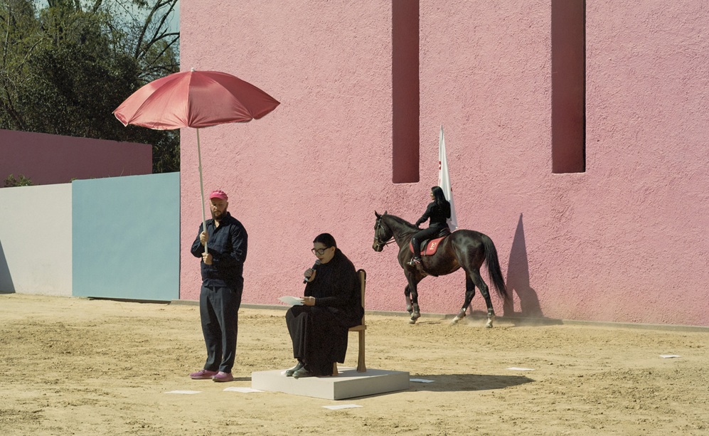 chevaux dans le cadre unique de l'architecture de Barragan. (above, Marina Abramović intervention at La Cuadra. ph. Fabian Martinez, below, Marina Abramović intervention at La Cuadra. ph. Kevin Corona).