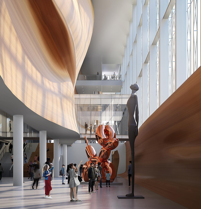 The architectural layout creates a seamless sequence of space connecting together the city, waterfront and harbour. The public pathways are designed to allow circulation through and around the site, knitting the museum into the urban network of the waterfront.