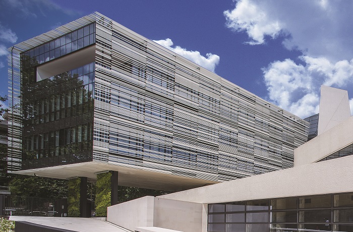Continuity with the pre-existing building is negated by the idea of “sectioning” the main structure to create separate blocks with openings incorporating inserts of greenery to boost the ventilation and natural light in the offices, visually link the inner courtyard to the city’s public spaces and allow all the individual parts of the building to be functionally independent. An elevated feature, a kind of overhead passageway, rises from the main entrance, extends across the rest of the building and stitches the individual parts back together to give the entire construction a highly eye-catching image.