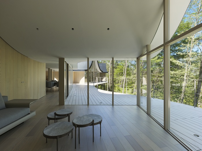 on a hilly 5,800㎡ site in Karuizawa, a resort town in Nagano Prefecture, lies a weekend house for a