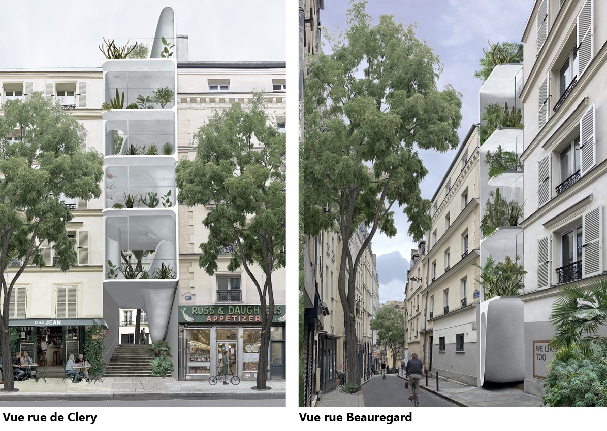 In the heart of Sentier, this commercial district of the 2nd arrondissement of Paris extremely mineral and where the absence of nature is quite dramatic, Rue des Degrés constitutes a void between two blind walls that connects Rue Beauregard and Rue de Cléry with a public staircase.