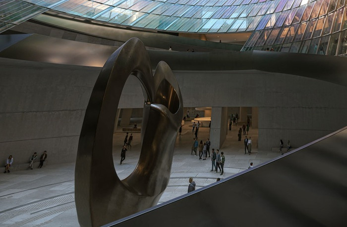 connectant les visiteurs au monde de l'art. Sa masse sculpturale rayonne à