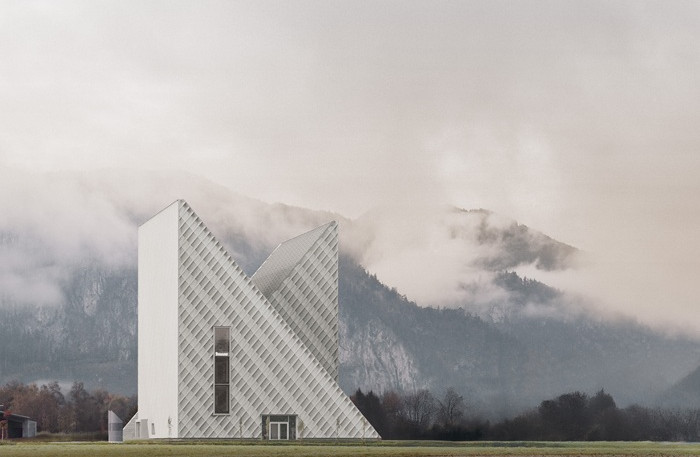 Le projet se caractérise par un volume quasi abstrait, composé de deux corps pyramidaux parfaitement visibles depuis l'autoroute reliant l'Allemagne et l'Autriche. Ce volume, à la fois intime et monumental, privilégie la hauteur sur ses surfaces verticales d'un côté et recherche une échelle plus humaine sur ses faces inclinées de l'autre.