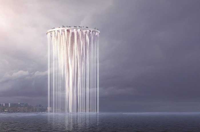 Déjà surnommé Cloud of Spray, le projet de Sou Fujimoto Architects, lauréat du concours New City Center Landmark, est une tour flottante monumentale qui se dresse dans la baie de Qianhai à Shenzhen. La tour imaginée mesure 268 mètres de haut et se compose d’une plateforme ronde posée au sommet sur 99 piliers dont l’épaisseur s’affine en leur base à mesure qu’ils descendent. Il s'agit à la fois d'une tour et d'un ensemble de tours qui symbolisent le futur des sociétés à l'ère de la diversité.