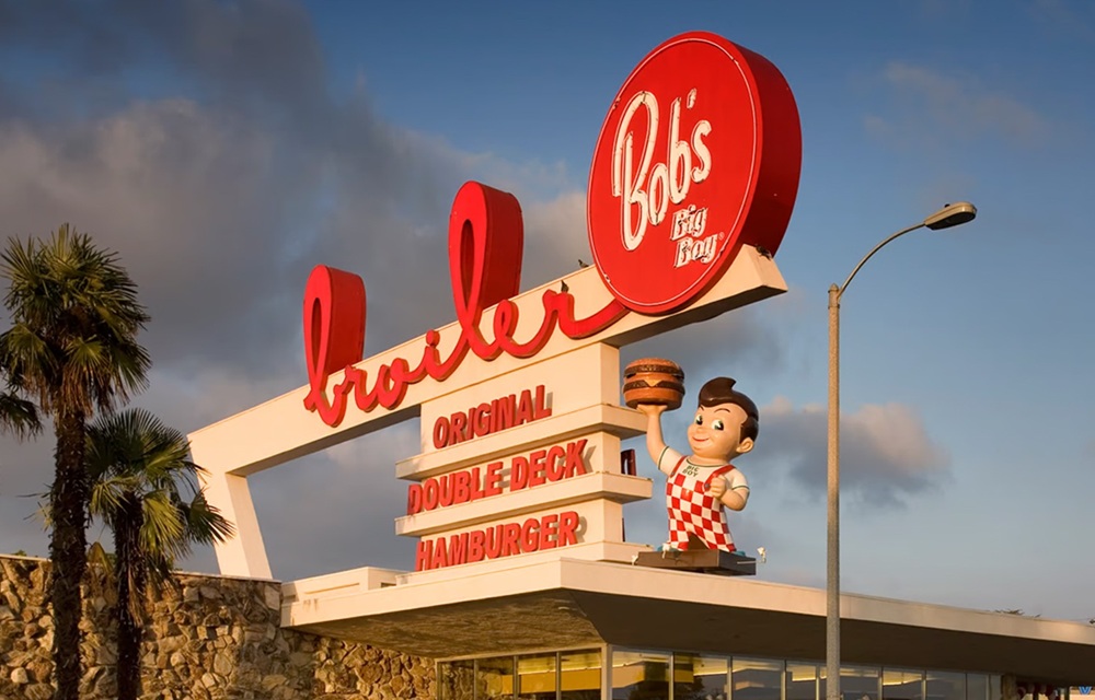 Googie did not emerge from some sort of cultural movement, it simply aligned with the needs of the average American. Los Angeles (already compared to Duckburg) is its capital in every sense of the word, being Googie in itself, with huge avenues lined with endless rows of cars; neon signs towering over bars and service stations, bowling alleys and motels, where there is a lack of what we would today call comprehensive urban planning. It is, in short, the triumph of the diversity of the various parts that make up a city, with the exception of one single unifying factor: eccentricity. Moreover, Googie is based on a mix of applied arts, each of which stands alone.