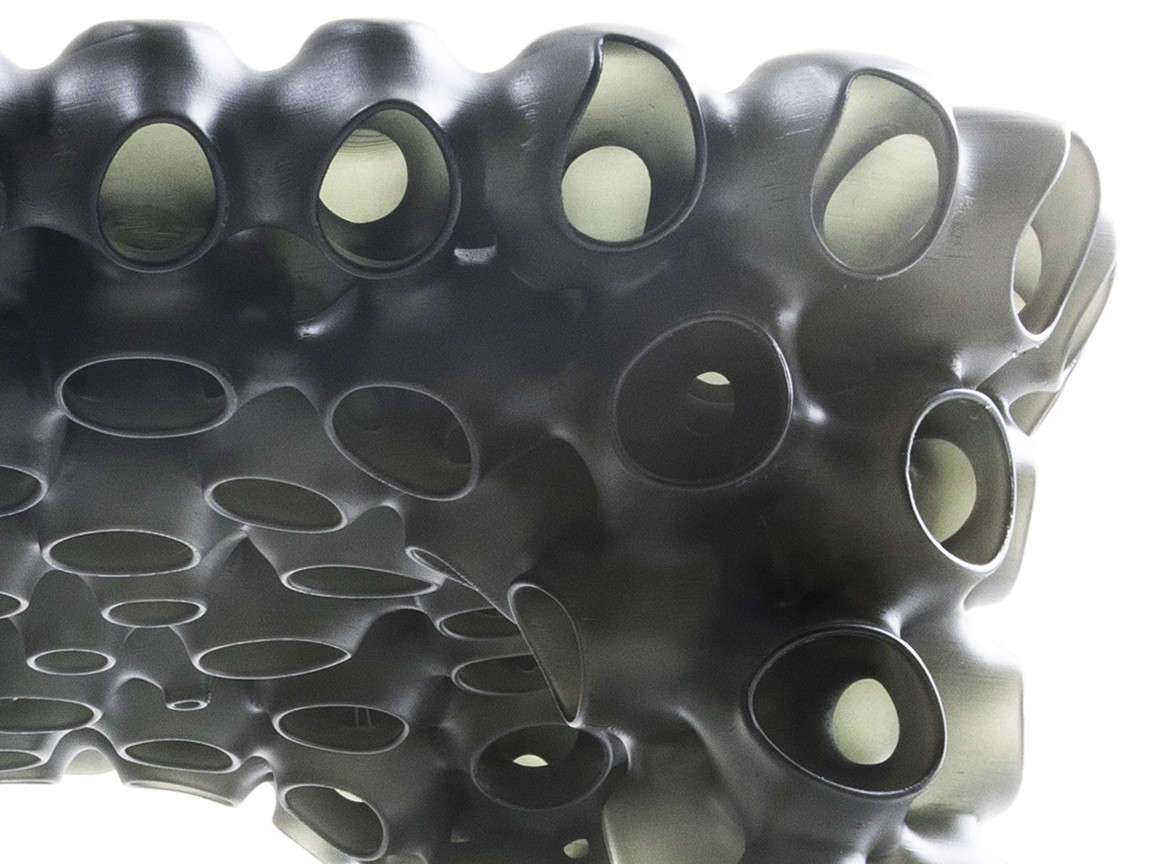 Spherene is made from Accura AMX™ Tough FR V0 Black, a particularly resistant and fire-retardant high-performance resin that is ideal for 3D printing. Using the Spherene plugin for Rhino 3D, designers can draw on advanced algorithms to reduce the amount of material needed without compromising strength.