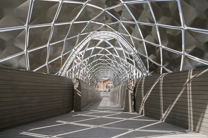 Gateway to Venice's Waterway firmato team della Fondazione Norman Foster e Porsche è l’innovativo hub di trasporto presentato all’Arsenale che esplora la mobilità futura a Venezia e oltre. La struttura lunga 37 metri dal design biomorfo, è una manifestazione fisica dell'intersezione tra design e architettura.