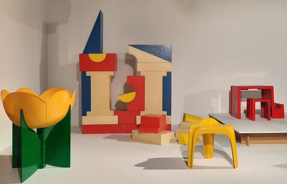 Baby-lonia designed by Gianni Arnaudo/Studio65 (Arnaudo/Audrito/Sambaniotis/Rachetta/Tartaglia, 1973, for Gufram) is linked to the teachings of the pedagogue Francesco De Bartolomeis; it is a sort of construction game made of large, soft, very colourful pieces such as Julian, a seat designed by Javier Mariscal (2005 for Magis) or Le cheval à bascule by Walter Papst de Wilkhahm (1958), amongst many others. They are all designed to provide essential emotional and sensory stimuli for child development. “Design Childhood” is the work of artists, who, in actual fact, have never really stopped being children themselves and whose projects for ‘little ones’ embody a desire to leave room for everybody to use their imagination, because it would be very sad if that was lacking in our modern-day world. Alba Basile