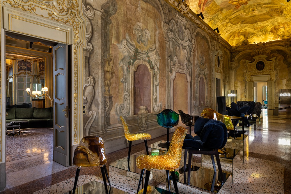 Edra, a renowned high-end design furniture brand, is showcasing its collections of sofas, armchairs, and furniture in the 18th-century rooms of Palazzo Durini Caproni di Taliedo in downtown Milan. In the richly frescoed premises of this Milanese building its collections, create a captivating dialogue between history and modernity and architecture and furniture projecting into a new dimension of timeless beauty and innovation.