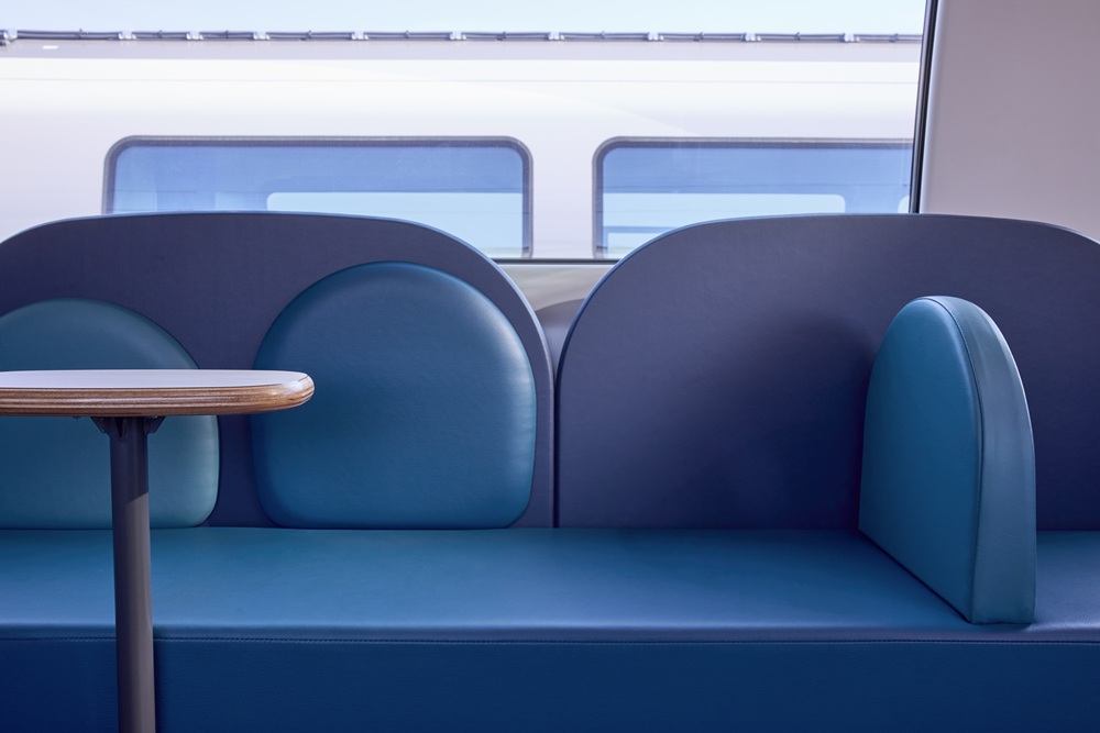 All the interiors and details have been redesigned with a central theme: to create a softer and more personal bubble of comfort in a shared space. These developments also reflect the ecological qualities of the train and our commitment to a post-carbon design. 97% of the materials used are recyclable. On the outside, light colours reinforce the albedo and reduce energy consumption in summer. Credit photo : Yann Audic