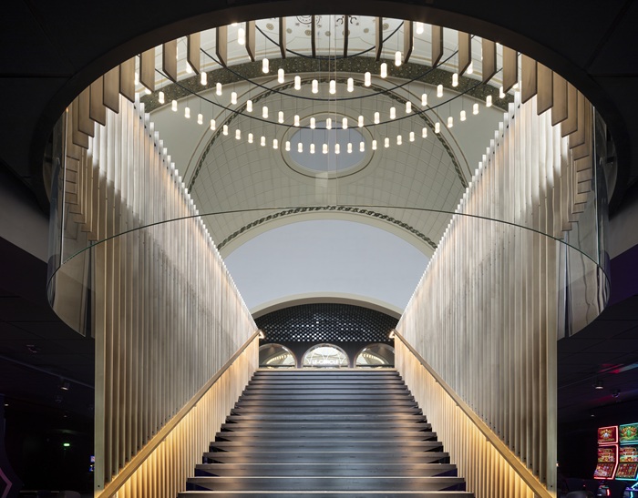 Top, Mémorial de Notre-Dame-de-Lorette, Ablain Saint-Nazaire © Phot. Aitor Ortiz / AAPP – Philippe Prost, Adagp, Paris, 2024 ; middle, Casino d’Evian-les-BainsVue intérieur© Phot. Aitor Ortiz / AAPP – Philippe Prost, Adagp, Paris, 2024 ; below, La Monnaie de Paris, Paris 6Musée 11 Conti, escalier dans l’ancienne citerne © Phot. Aitor Ortiz / AAPP – Philippe Prost, Adagp, Paris, 2024