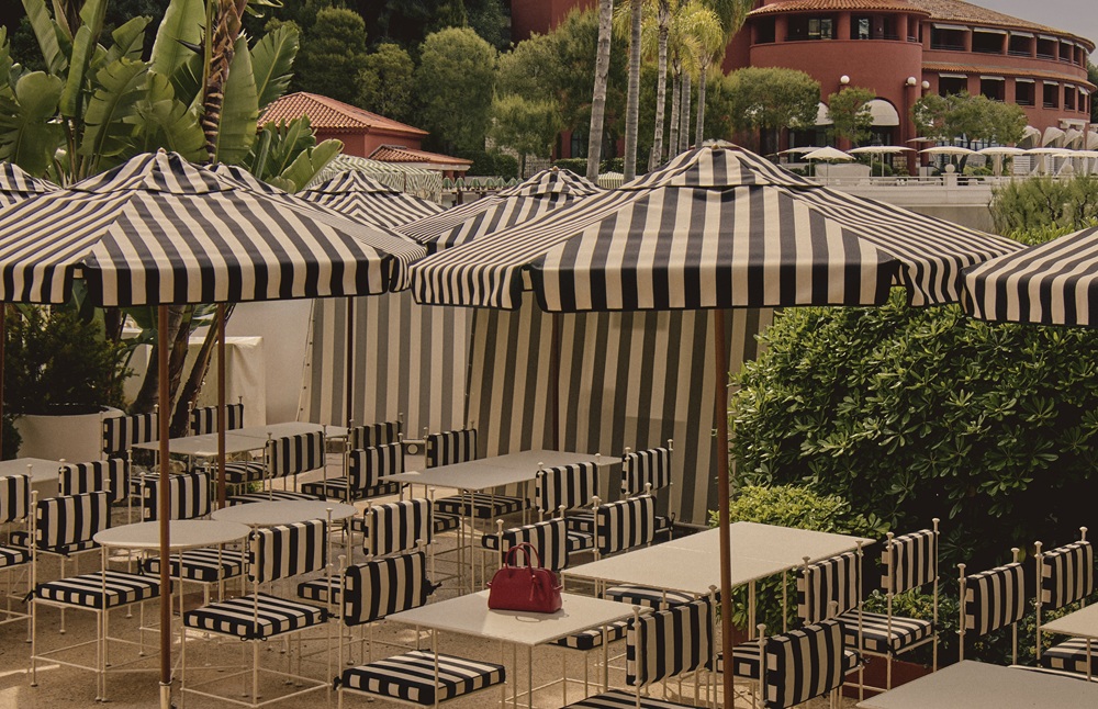 Questo gioco di righe si ritrova anche al Café de la Piscine e nelle due boutique raffinate all'interno del Beach Club rafforzando l’esclusività e lo spirito Riviera Chic dell’istituzione balneare monegasca.