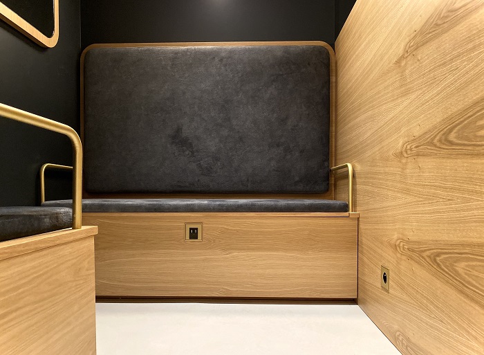 Gli accenti dorati degli elementi d’arredamento su misura e gli interruttori e gli interruttori in ottone di JUNG completano questo ambiente lussuoso. Gli stessi dettagli dorati si ritrovano armoniosamente negli interni di tutte le stanze, dalle sale per i trattamenti e le sale d'attesa ai bagni.