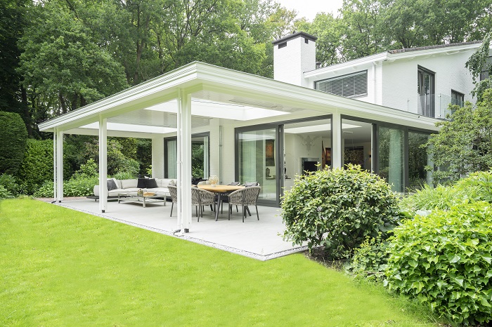 Particolarmente riuscita l'applicazione del modello Neolith® Beton Silk tra il soggiorno e il terrazzo. Quando le vetrate della zona giorno sono spalancate, la casa e il giardino si trasformano in uno spazio continuo, creando una sensazione di fluidità.
