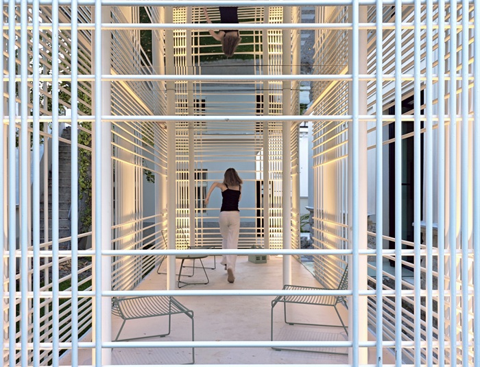 attraverso pareti solide, ma attraverso ritmo, stratificazione e trasparenza.