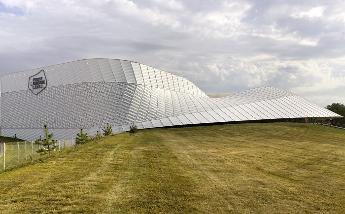 Il complesso comprende un grande sala per attività sportive e di svago con 4.500 posti, una palestra con parete da arrampicata per gare internazionali e una sala congressi con 500 posti. A queste tre sale si aggiungono delle sale riunioni modulabili, degli uffici e spogliatoi per artisti e atleti. All'esterno, un parcheggio da 670 posti auto, un'area paesaggistica e un velodromo completano l’insieme.